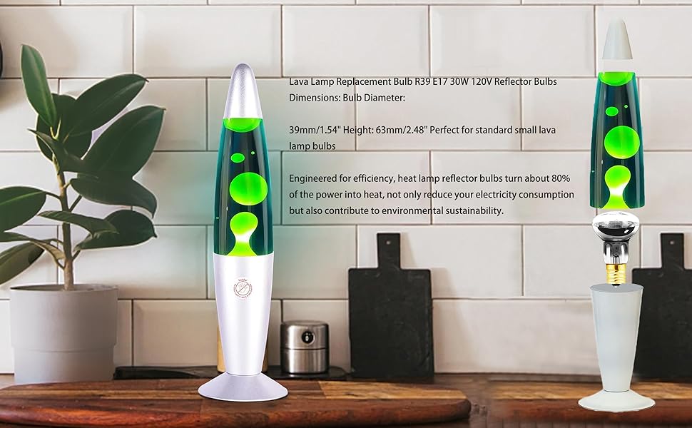 Standard R39 reflector shape and E17 screw base replacement bulbs for lava lamp and glitter lamps,Bulb Diameter:39mm/1.54in height:59mm/2.3in