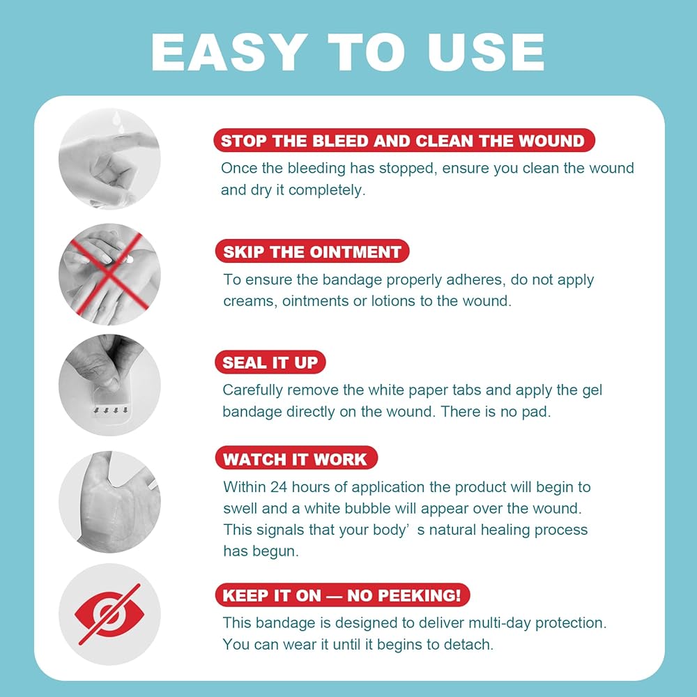 Each bandage uses advanced hydrocolloid technology to absorb fluids, forming a white bubble under the seal as healing begins. This helps protect the blister from water, dirt, and germs, while also promoting better recovery.
