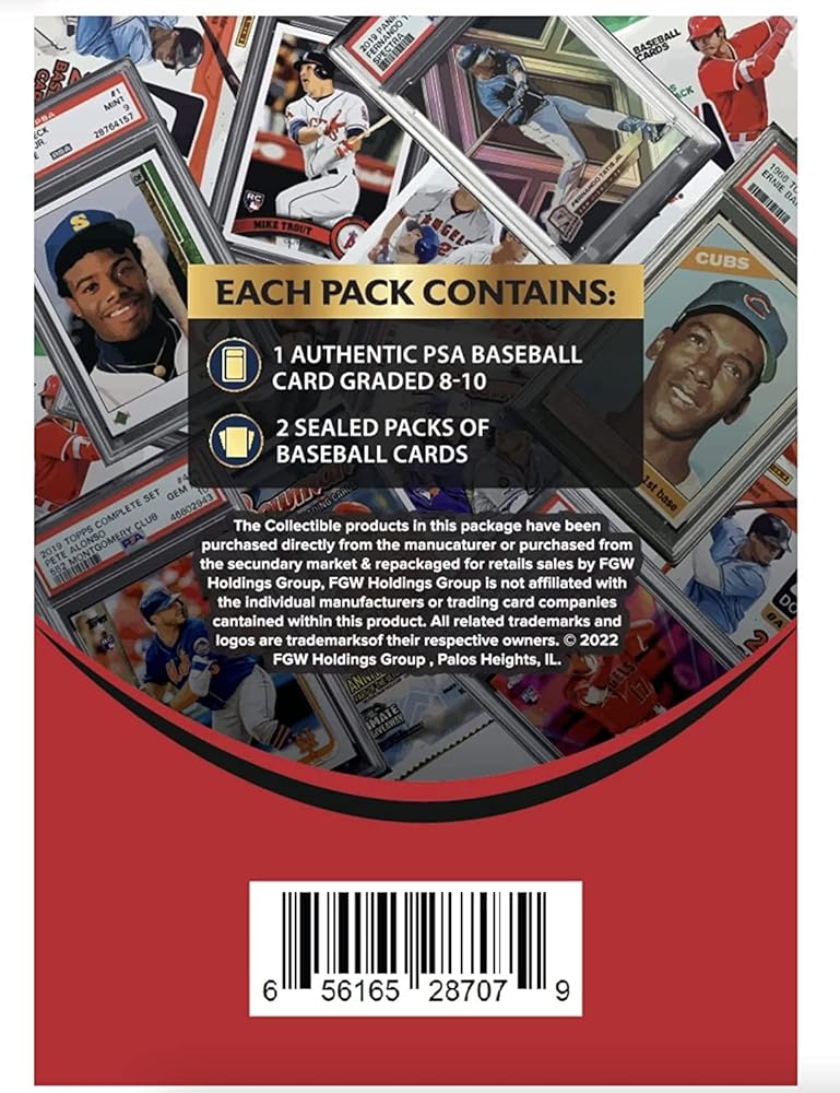 Mike Trout PSA Graded Card Mystery Power Pack: Each Pack Contains 1 Mike Trout PSA Graded Baseball Card with a grade of 8 , 9 or 10 and 2 Sealed Packs of baseball cards! Packs will be Panini, Topps, Donruss, Upper Deck or Fleer ranging in years from 1982-2022. Zoo Packs makes sure you get your money's worth so you will get a HIGH Grade card. Don't worry about receiving a grade of 7 or even LOWER. It costs $30 and a wait time of a year if you wanted to get your own card graded by PSA. The reviews will speak for themselves as they start to come in so don't miss out!