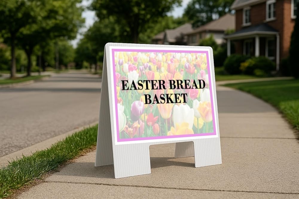 Easter Bread Basket Spring Flowers Tulips Directional Arrows A-Frame Double Sided 23x23 in. sign in Kuwait