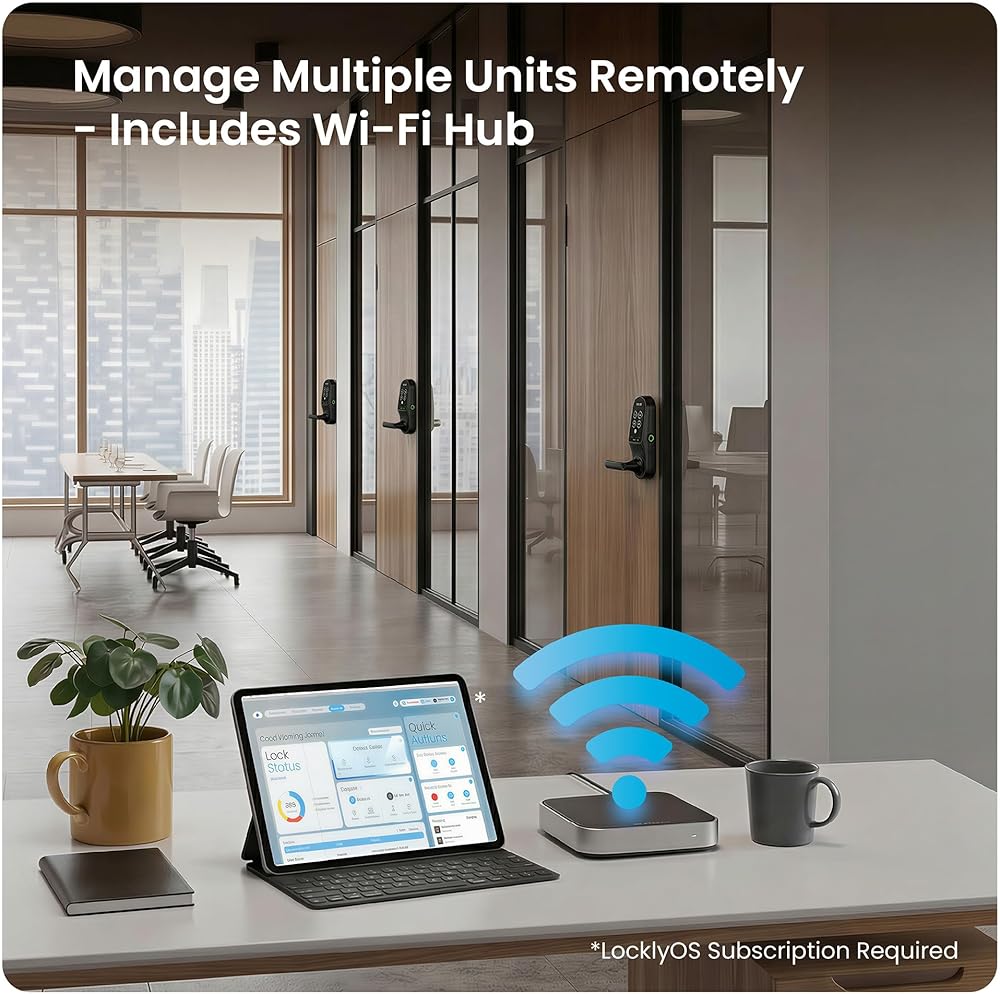 MANAGE ONE DOOR OR A THOUSAND — REMOTELY: Built-in Wi-Fi plus the Secure Link Wi-Fi Hub give you real-time remote control. Pair with LocklyOS to manage access across multiple buildings from one dashboard — assign roles, issue credentials, and monitor activity logs from any browser.