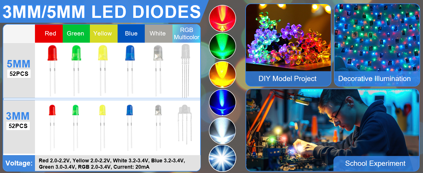 【ELECTRONIC LEARNING & CREATIVE PROJECTS】 Our electronics starter kit is an ideal choice for electronic learning, suitable for all stages from beginners to senior enthusiasts. For beginners, the components and breadboards in the kit can help them quickly understand the principles of circuits and master the basics through hands-on practice. For advanced users, the rich variety and quantity of components provide them with greater creative space and enable more complex electronic projects.