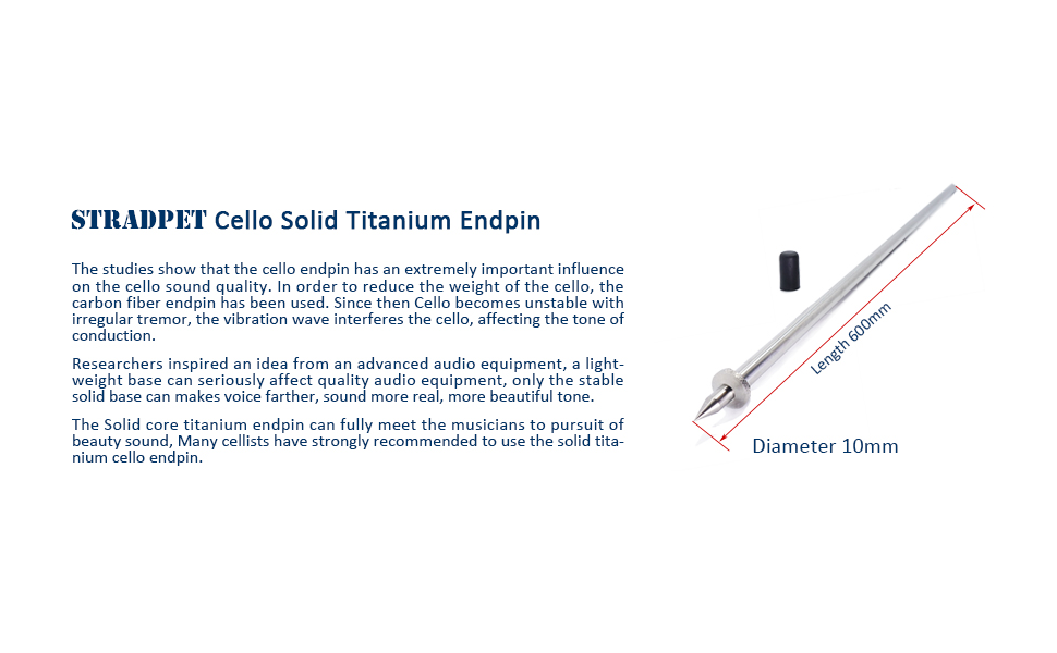 Titanium Endpin for Cello in diameter 10mm, Length 595 mm