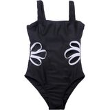 Cute Design:our girls swimwear designed in solid colors and features subtle petal-shaped waist cutouts for stylish flair, especially the black one with white petal is so cute.