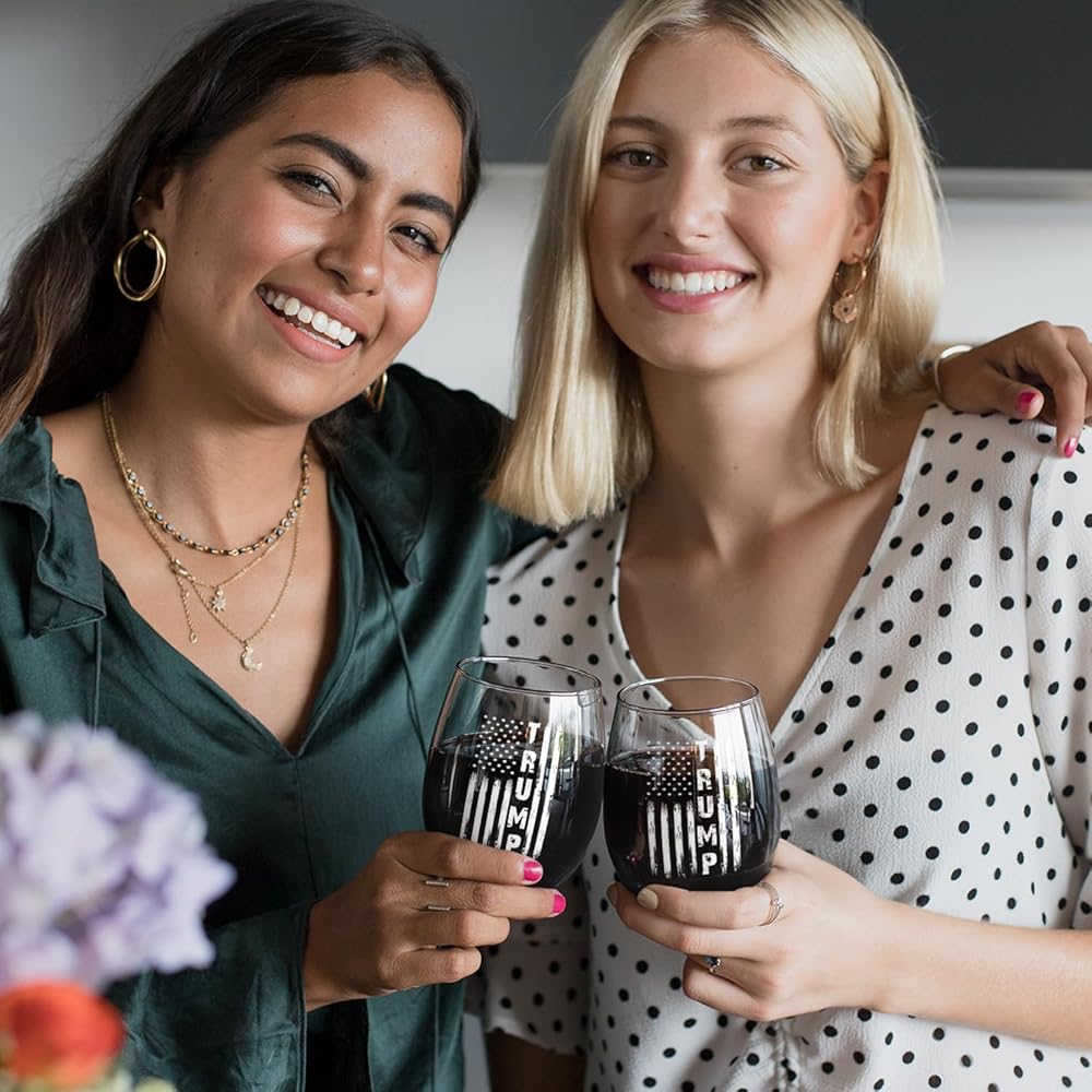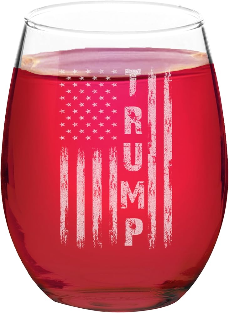 This patriotic stemless wine glass brings bold American style to your drinkware collection. Featuring a red, white and blue flag design with a humorous 2024 theme, this glass is perfect for parties, home bars and everyday wine enjoyment. With a 15oz capacity, it's great for red wine, white wine, cocktails or any cold beverage. The stemless design feels comfortable in your hand while the durable clear glass is dishwasher safe for easy cleanup. Whether you're hosting friends, relaxing at home or looking for a fun gift, this patriotic wine glass adds personality and humor to every sip.