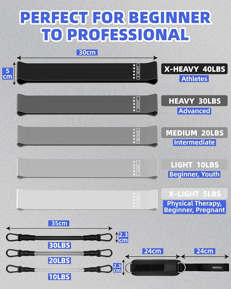 【Durable, Latex-Free TPE Material Built for Consistent Performance】 Crafted from high-quality, eco-friendly TPE, our resistance bands are completely latex-free, odorless, and designed to resist snapping. They maintain reliable elasticity and tension through repeated use, offering consistent resistance from 5 to 40 lbs to support your long-term fitness journey.