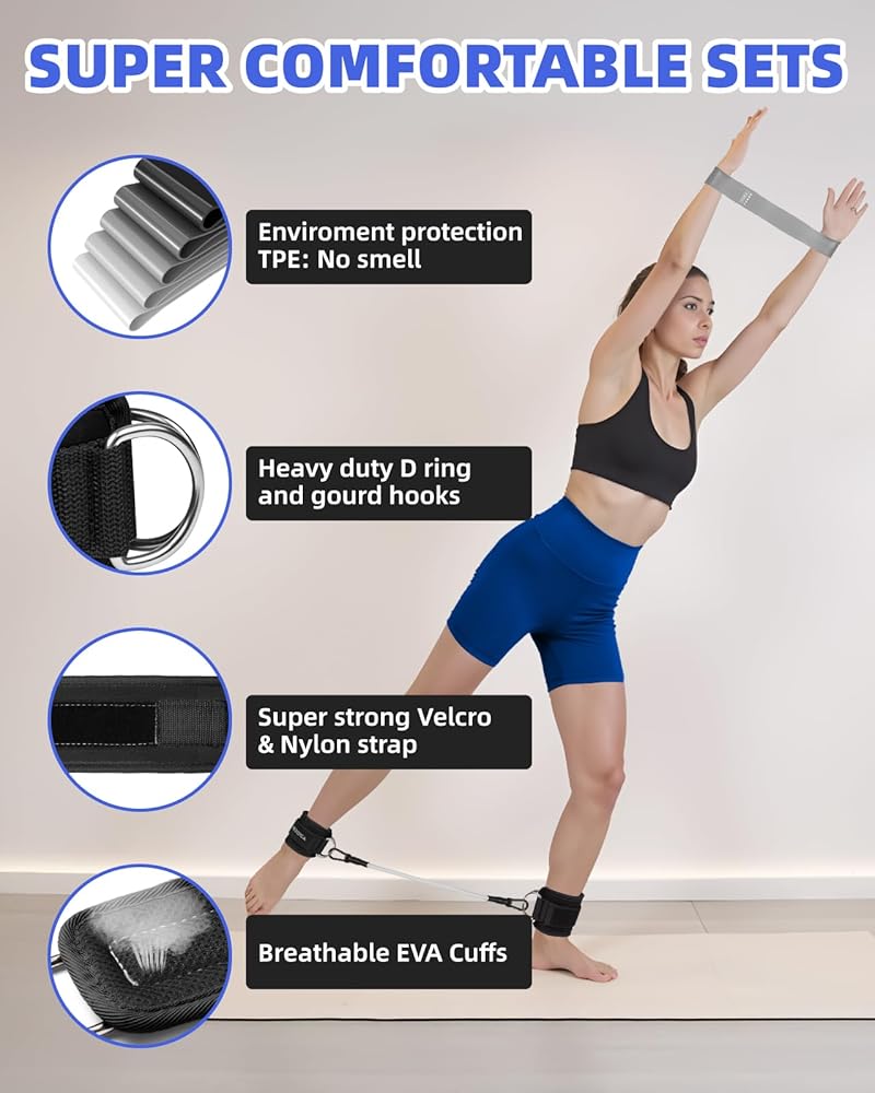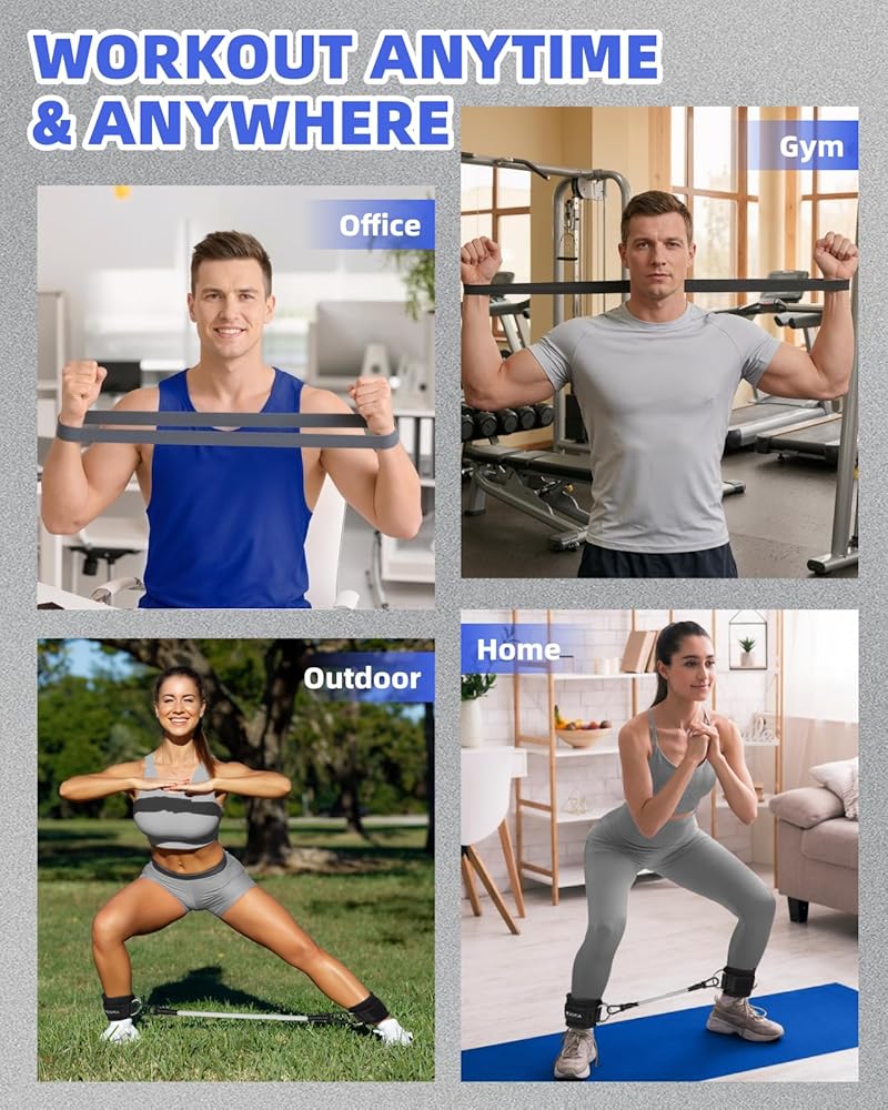 【A Full-Body Gym with Guided Workouts for Every Goal】 Get everything you need to target all muscle groups. Use the five resistance bands for arms, back, shoulders, and core. The dedicated ankle bands build lower body strength with targeted exercises. Our included training guide provides clear instructions for endless exercise combinations, helping you sculpt, tone, and achieve your fitness objectives effectively and safely.