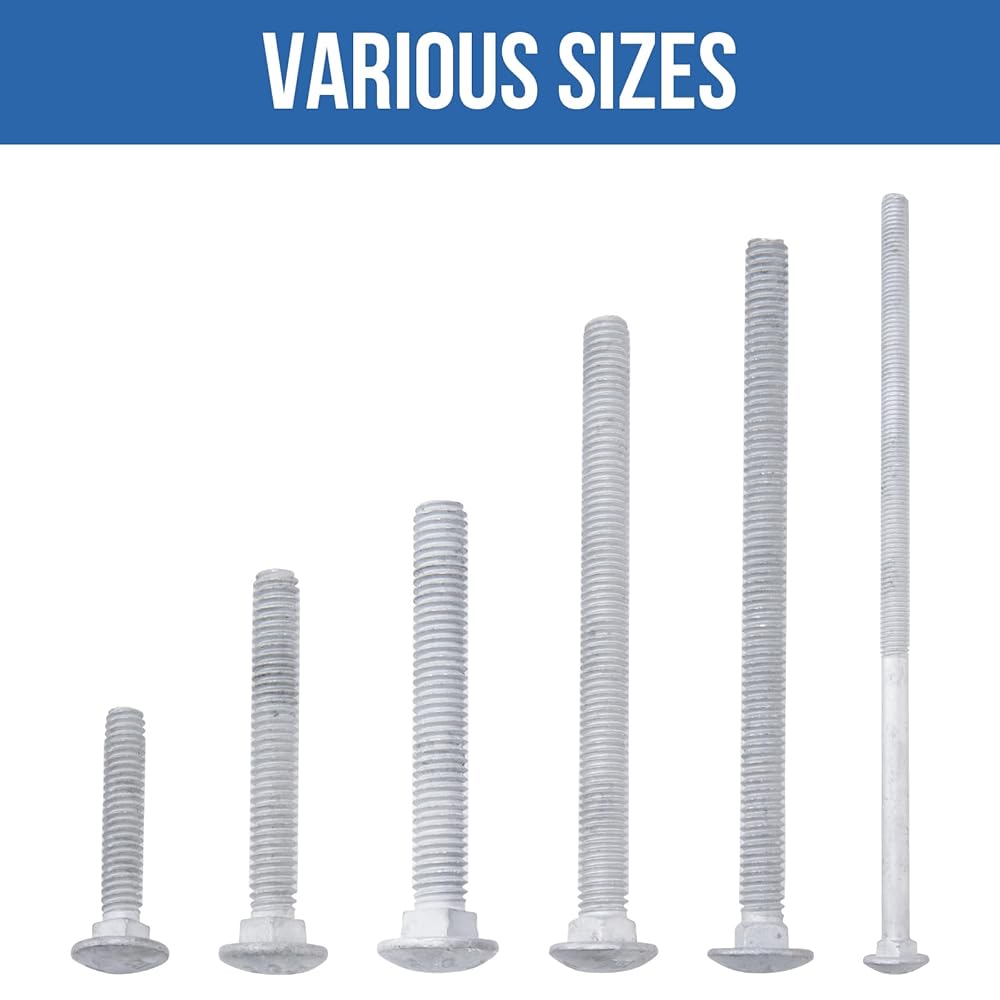 Made from premium carbon steel. Grade 307A bolts. Hot Dip Galvanized improve these carriage bolts strength, durability and corrosion resistance for outdoor use