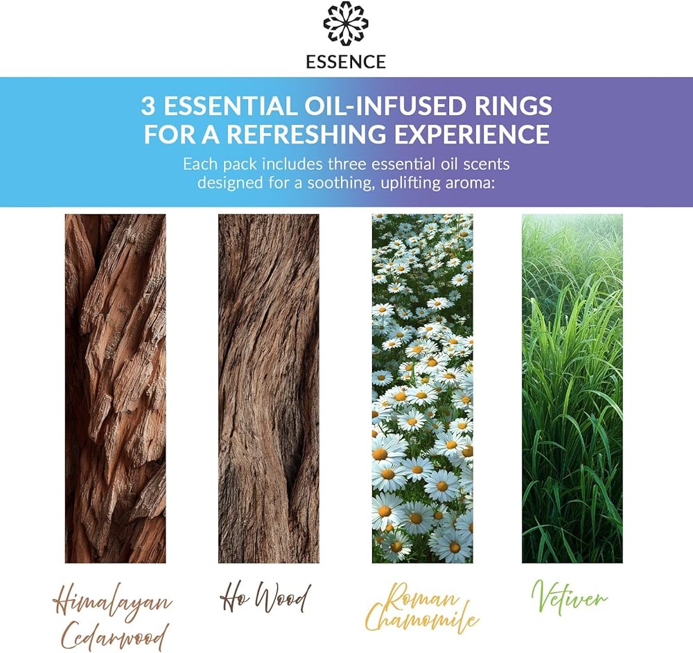 Infused With 100% Pure Essential Oils – Each Essence nose diffuser ring is infused with high-quality essential oils using advanced scent-retention technology, giving you long-lasting fragrance all day