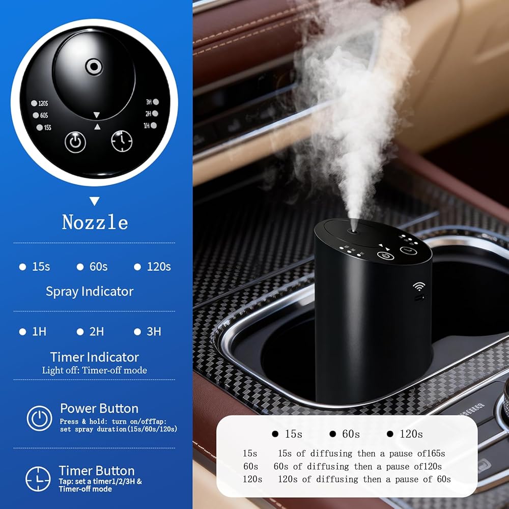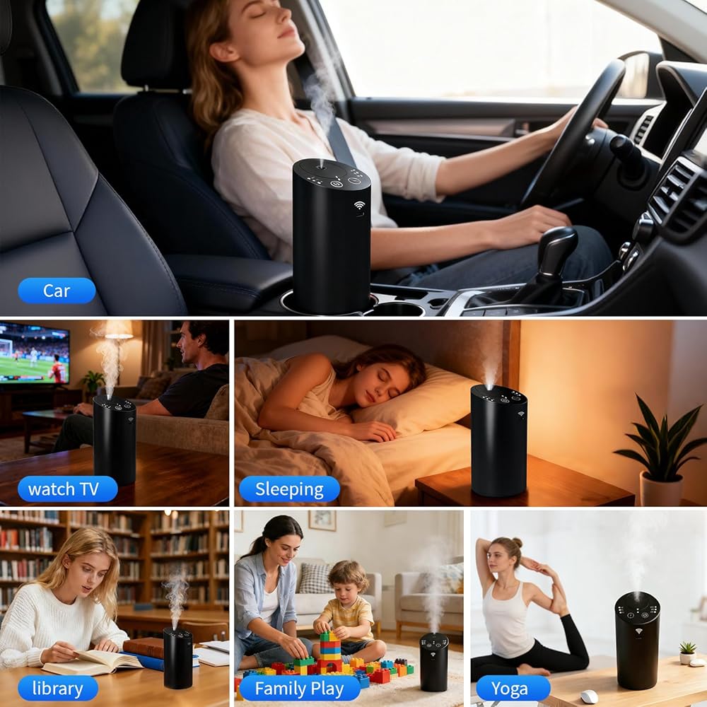 For Daily Commuters & Ride-Hailing Drivers : Tired of refilling water, cleaning moldy tanks, or dealing with foggy windows from traditional humidifiers? Our waterless nano-mist technology eliminates water and heat completely. Just place this cup holder-sized diffuser in your car—no condensation on windows, no spills, no daily refills. Perfect for Uber/Lyft drivers, parents on school runs, or anyone who wants a fresh-smelling car without the hassle.