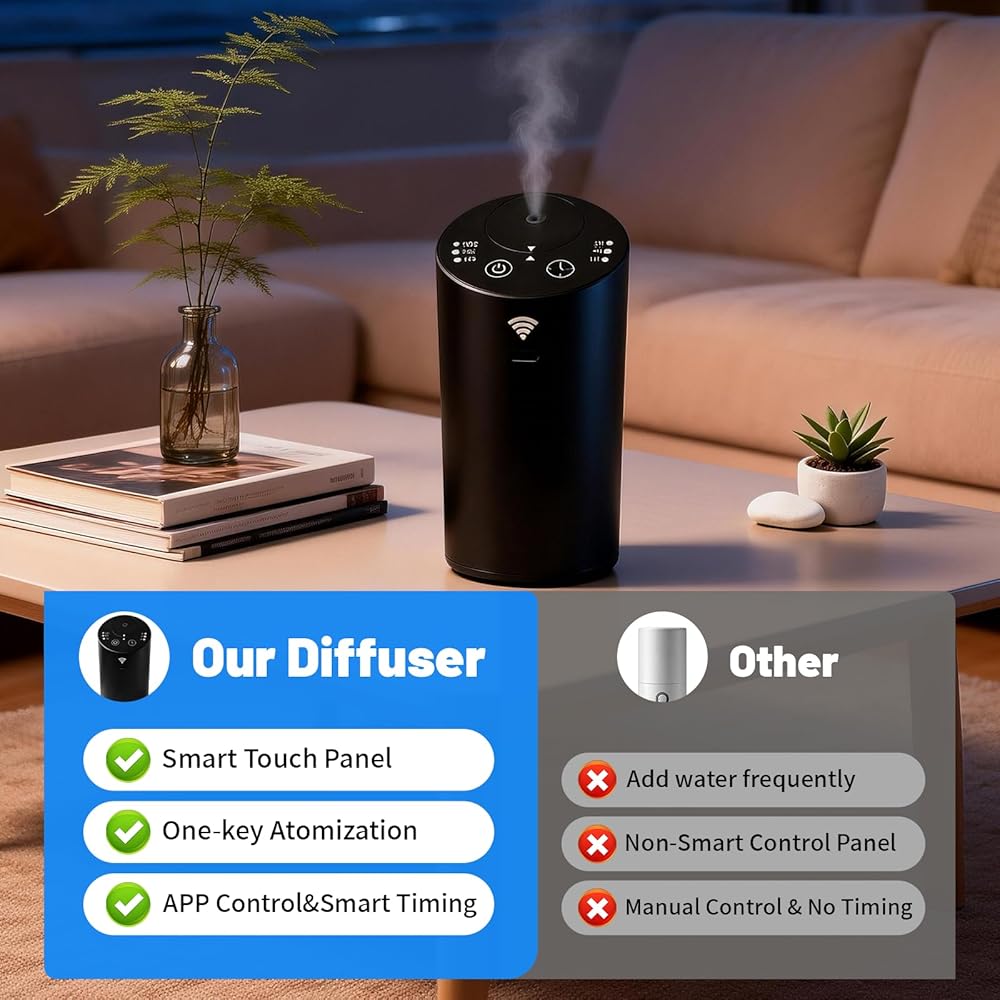 For Home Office Workers & Allergy-Sensitive Users: Ultrasonic diffusers dilute your essential oils with water (reducing aroma purity and therapeutic benefits), and stagnant water tanks breed mold and bacteria. Our waterless diffuser converts 100% pure oil into fine nano mist—no water, no heat, no dilution. Ideal for yoga practitioners, meditation users, or anyone who wants a clean, mold-free scent experience in their home office, bedroom, or bathroom (covers up to 600 sq ft).
