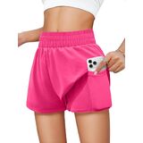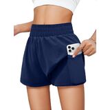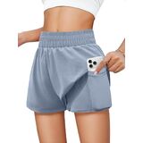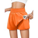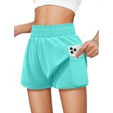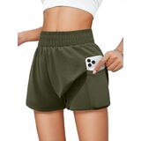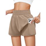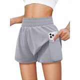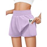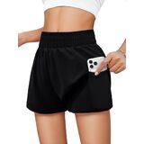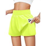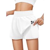 Tag free! The size tag is on the lower left inner side of the clothes when wearing.Features: Girls' running shorts have double-layered, waisted elastic design,two convenient pockets for storing small items. The relaxed outer layer adds a touch of style to your workout, and fitted inner liner, secure your privacy while allow you move freely.