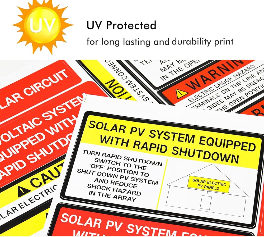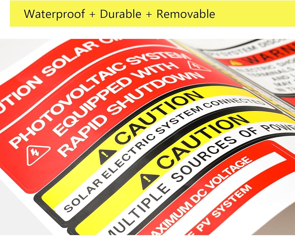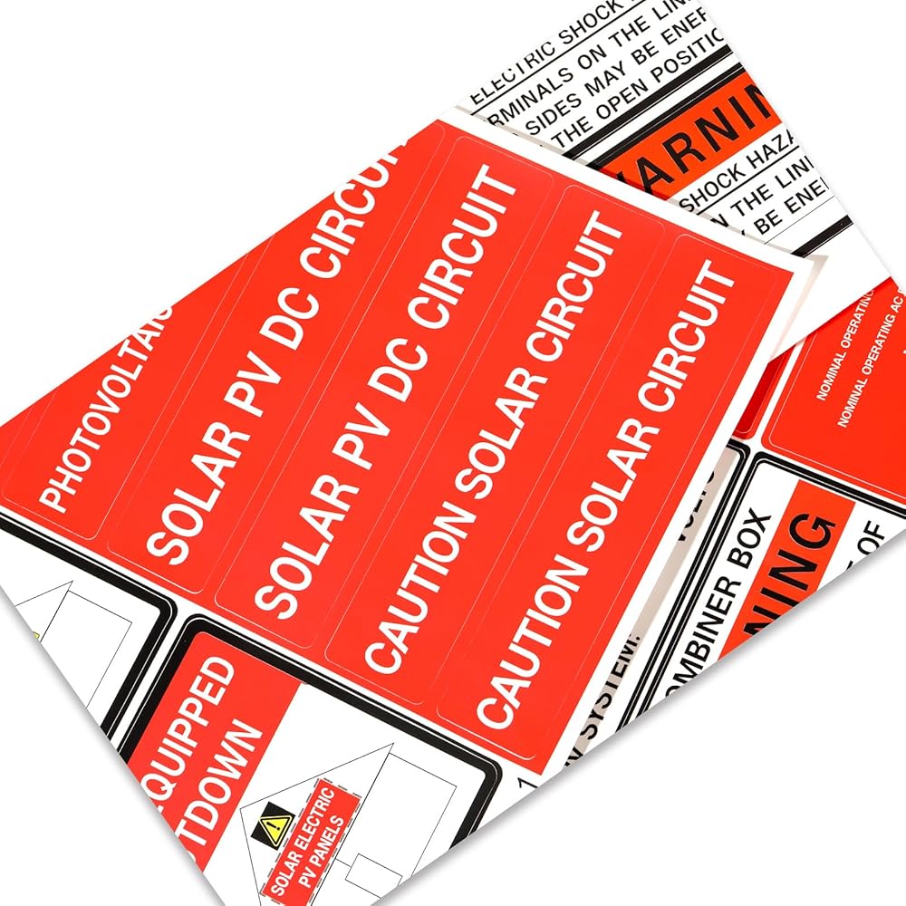 Elevate your solar installation's safety with a burst of 48 vibrant, durable stickers. Each label serves as a guardian of safety, ensuring your solar system adheres to the 2017 and 2020 National Code requirements.