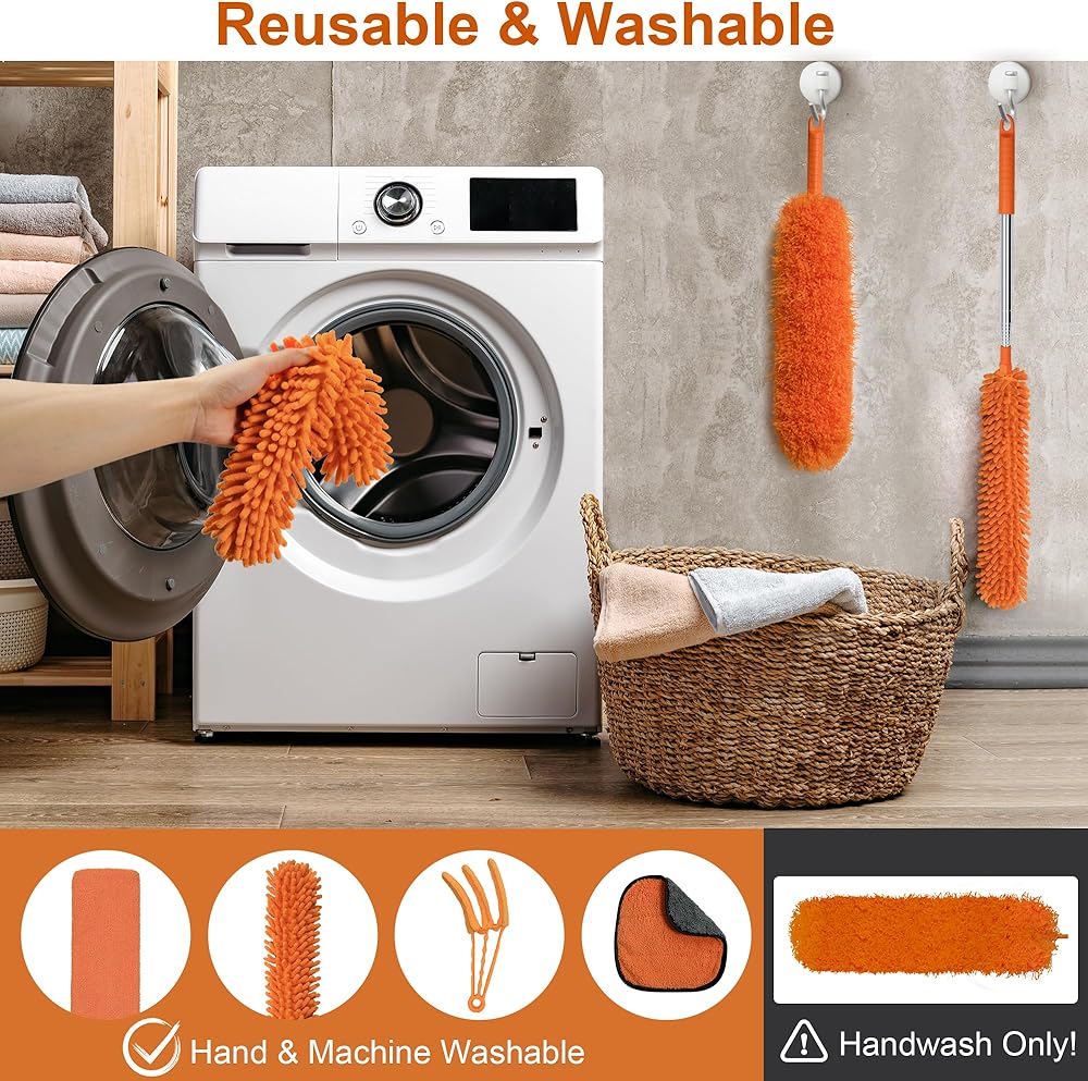 Reusable Cob Web Duster Head: The cleaning head of this high ceiling duster is detachable and washable. Just rinse the feather duster with water and hang it for air drying. There're 6 interchangeable heads to conquer every dust-prone area in your home