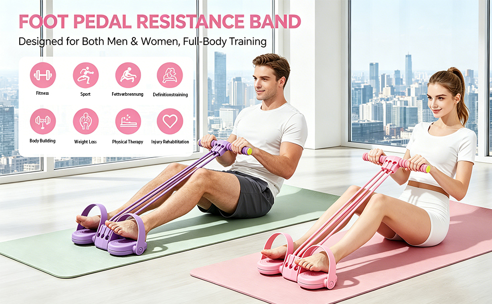 Upgraded Pedal Resistance Band with Handle,Mother's Day Gift,6-Tube Multifunction Stretching Workout Band for Yoga,Home Workout Equipment,Device for Abdomen,Waist,Arm,Leg,Core/ABS,Gift for Mon