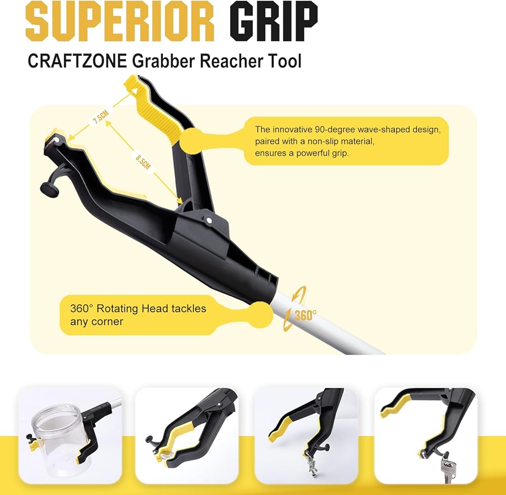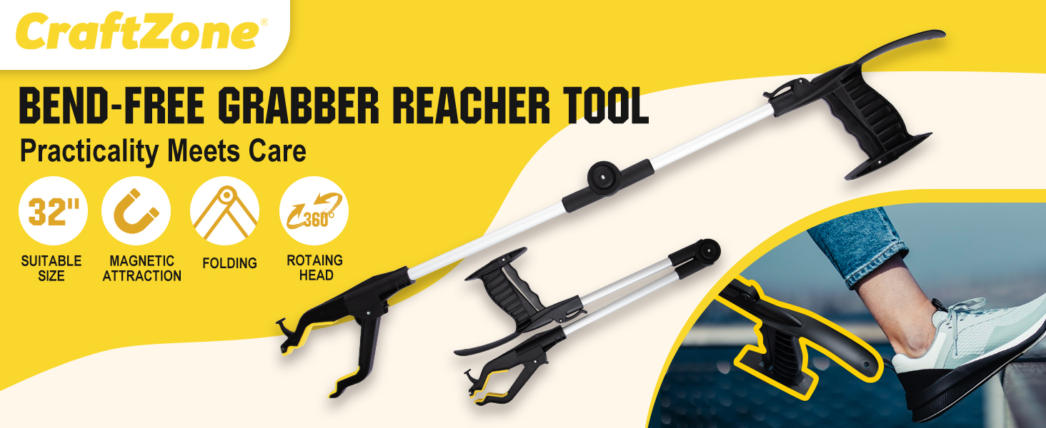 No-Bend Living - The CRAFTEZONE 32" grabber reacher tool 2-pack was born to keep your back straight. Thanks to the built-in shoehorn, seniors, post-op patients, or anyone with limited mobility can slip on shoes and pick up dropped pills, mail, or litter without ever bending over. Count on this reacher grabber pickup tool as your daily trash picker upper grabber and bend-free companion.