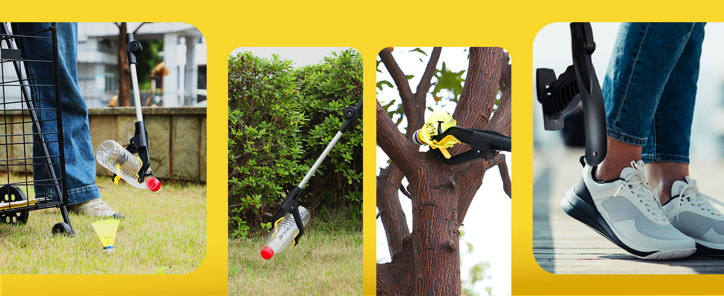 360°Swivel & Magnetic Tip - The grabber reacher tool head rotates a full 360° and locks every 90° so you can nab items behind dressers, under beds, or high shelves without twisting your arm. A built-in magnet turns the reacher grabber pickup tool into a trash picker upper grabber that instantly collects nails, keys, coins, or batteries from grass or gravel.