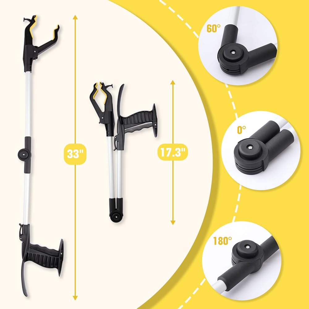 Fold & Go Storage - Fold the 32" shaft down to 17" in seconds and stash the grabber reacher tool in a handbag, glove box, or walker basket. At only 0.6 lb each, these reacher grabber pickup tools travel anywhere, turning every outing into a no-bend, no-litter adventure with the ultimate grabber set.