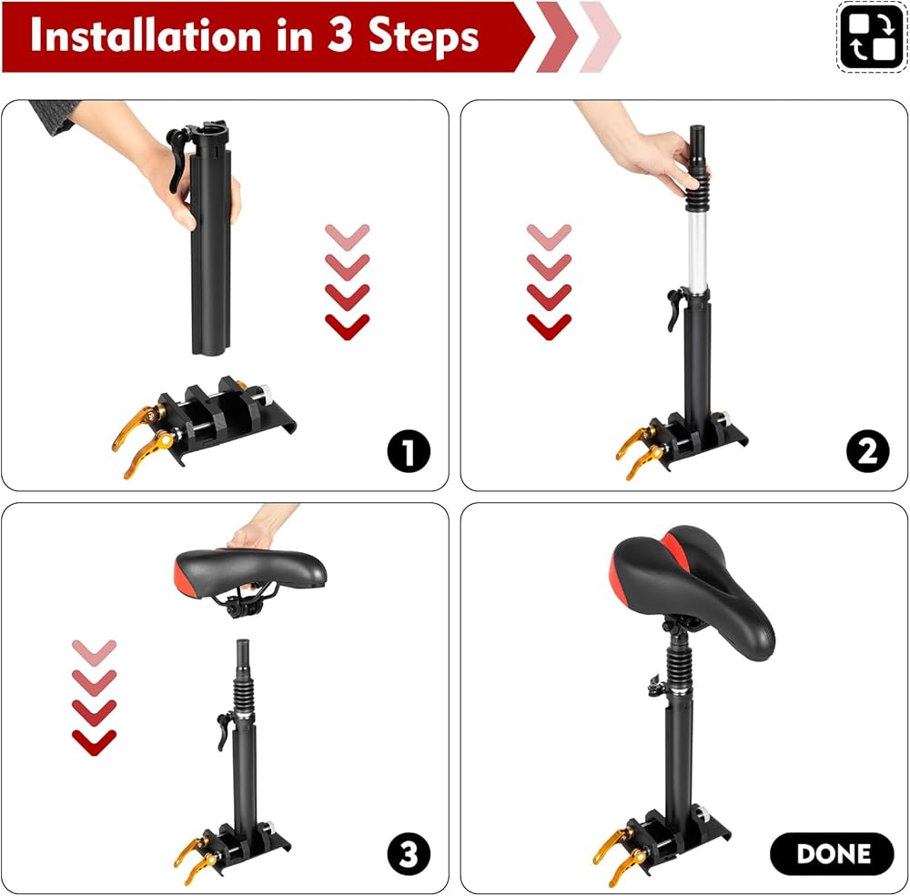 Adjustable Height: The support frame of this scooter seat is designed to be adjustable to meet the needs of different heights. Compared with the fixed support frame scooter seat, the adjustable length support can give you a more comfortable experience.