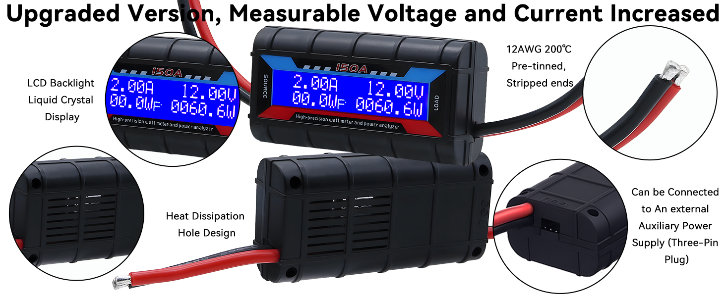 【Measuring Range】Voltage: 0-60V, resolution 0.01V, Current: 0-150A, resolution 0.01A, continuous current 50A, Power accumulation function: 0-6554WH, Capacity accumulation function: 0-65AH