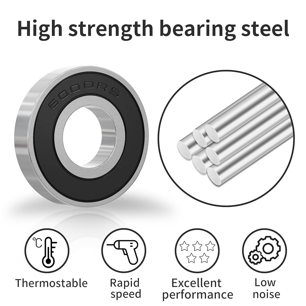 【Material】Crafted from premium high-carbon steel, our deep groove ball bearings feature high-carbon steel balls and stamped steel retainers. Double rubber sealed miniature enhance durability, allowing these bearings to withstand heavy loads and rigorous use