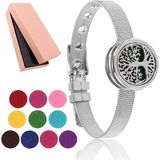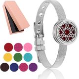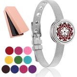Essential Oil Diffuser Bracelet with Gift Box Aromatherapy Locket Adjustable Stainless Steel Flowers Watch Chain Bracelet with 10 Pcs Refill Pads for Women
