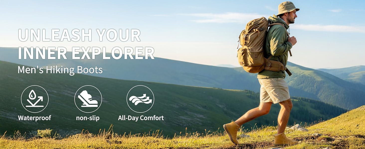 Lightweight Anti-Slip Tread: The tread of mens hiking boots is engineered for both city streets and wet trails, boosting grip while keeping weight low.