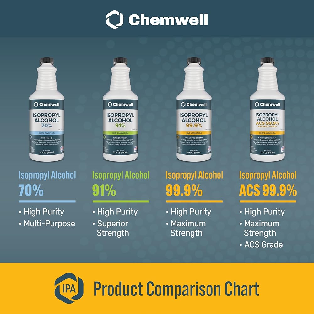 Chemwell ACS Grade 99.9% Isopropyl Alcohol is as pure as it gets—no frills, no fillers, just high-performance cleaning power. This ultra-concentrated formula is ideal for tasks where moisture is the enemy, like electronics maintenance, lab work, or prepping delicate components. It evaporates almost instantly, leaving no residue behind, which makes it a favorite among serious DIYers, technicians, and anyone who needs precision-level cleaning. The 32 fl oz bottle gives you plenty to work with, without weighing you down.