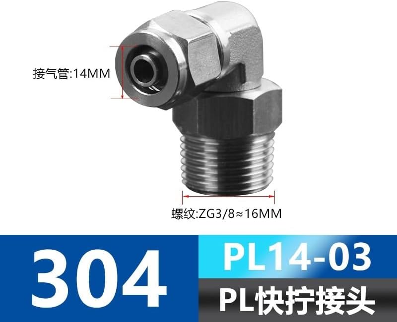 304 Stainless Steel Pneumatic Tube Quick Twist Joint PL8-01 Locking Nut Right Angle Rotation Bend 6-1 1Pcs(不锈钢快拧PL14-03)