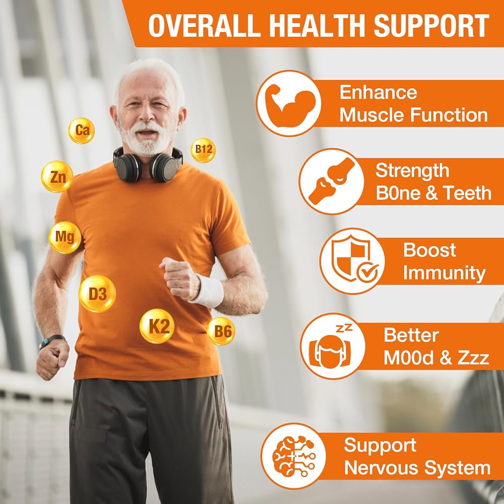 【Complete Calcium Magnesium Formula】Featuring 1200mg calcium citrate, magnesium, zinc, and essential vitamins (B6, B12, D3, K2), these calcium supplements for women provide a well-rounded approach to supporting bone health, nerve function, and overall wellness.