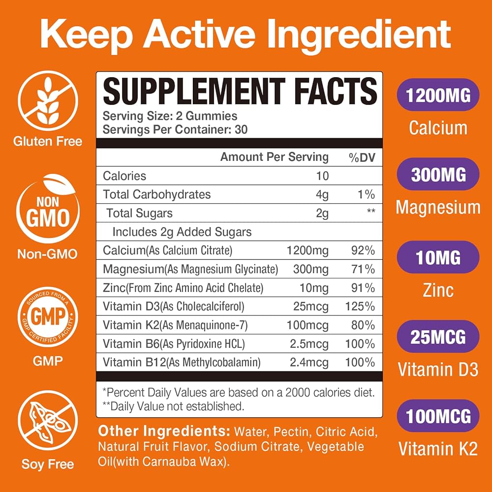 【Trusted Quality & Pure Formula】Crafted with premium, vegan ingredients, these calcium 1200 mg with vitamin d3 gummies are non-GMO, gluten-free, and free from artificial additives. They deliver a safe, natural, and effective solution for your daily calcium and bone health support.