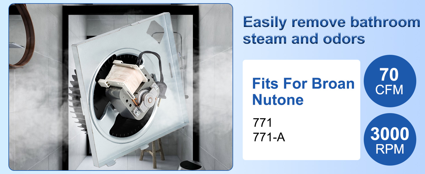 Compatible with models:Fits For Broan Nutone Bathroom Exhaust Fan 771, 771-A.Part Number:S97017450, Motor Part Number 99080599, Blower Wheel Part Number 99020278