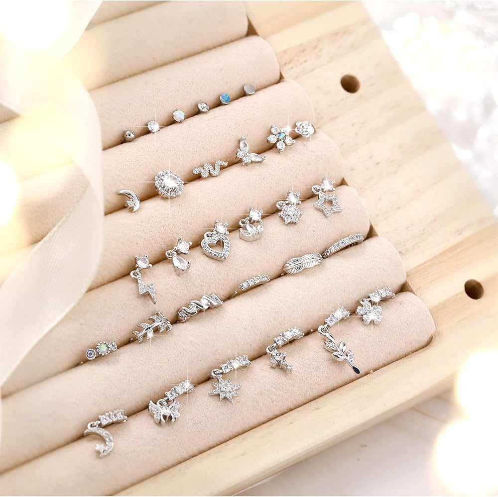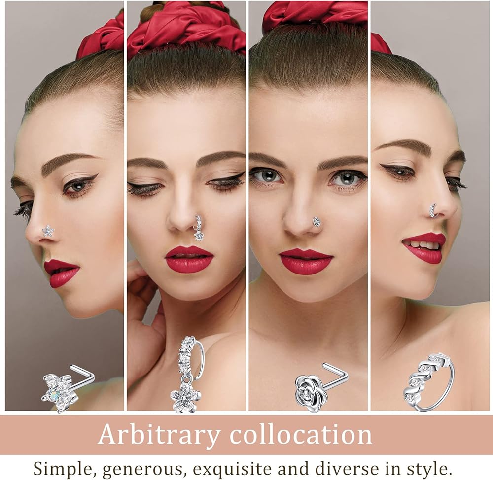 Package Content: you will receive 30 pieces of nose stud nose rings in various styles, including 6 pieces of round dangle nose rings for women, 6 L shaped simple nose studs, 6 L shaped complex nose studs, 6 L shaped diamond pendant nose studs, 6 complex round nose rings; The quantity is enough to meet your daily matching needs