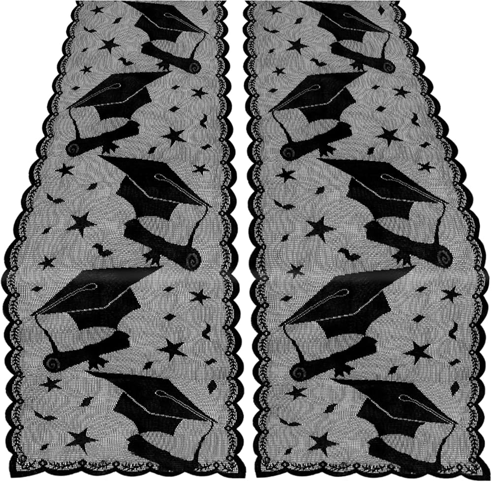 Graduation Table Runner, Black Lace Table Runner, 2026 Graduation Party Decorations for Table, 12 X 72 Inch Lace Grad Cap Table Cover Centerpieces for Grad Decorations for Home Kitchen Dining Room