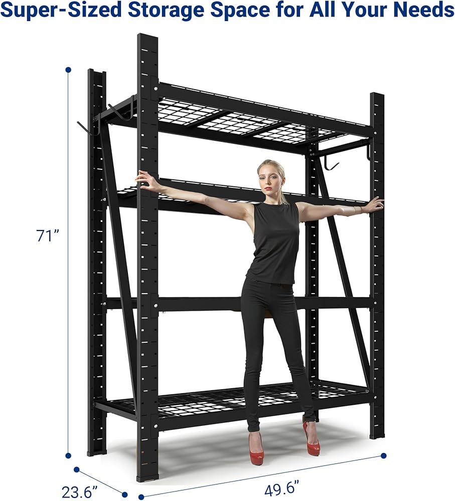 Spacious Storage for Oversized Items - With its 23.6"D x 49.6"W x 71"H design, this garage shelving unit easily handles everything from toolboxes and storage totes to sports gear and seasonal equipment. Ideal for garages, basements, warehouses, or workshops, these versatile storage shelves create a clean, organized space you can rely on