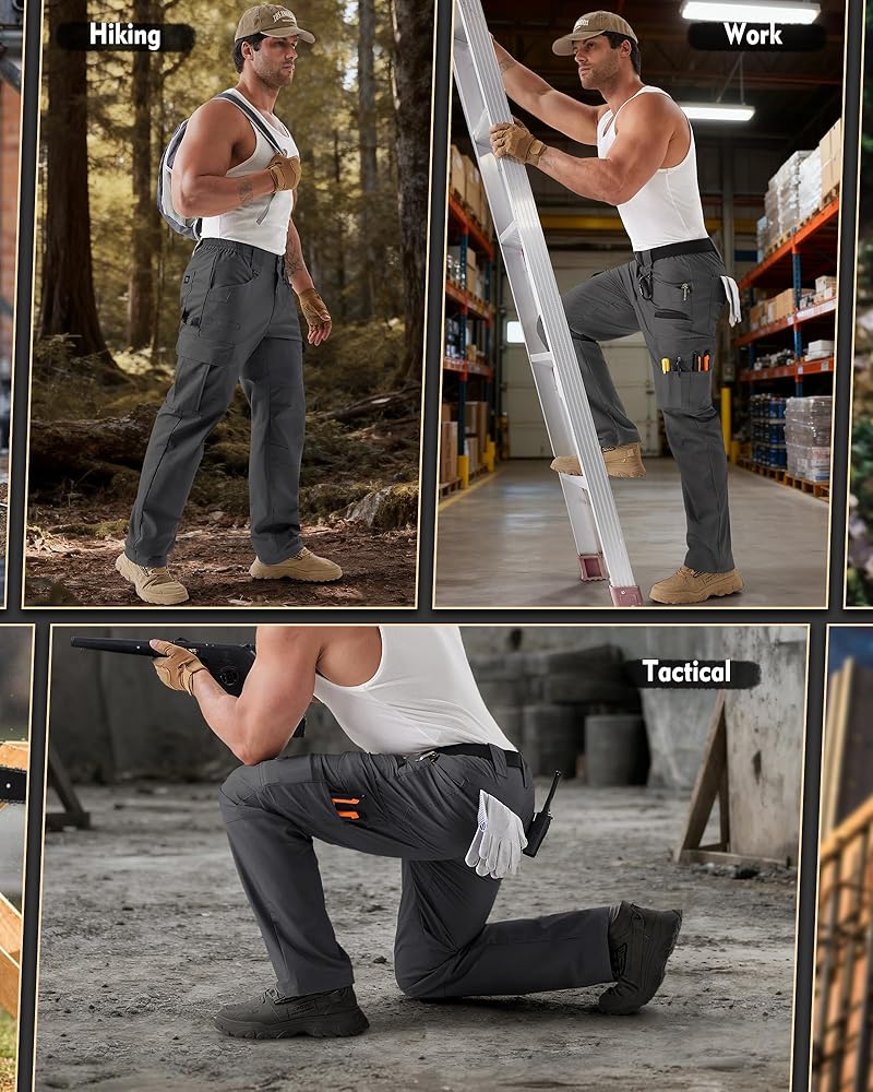 DESIGNED FOR WORK & OUTDOOR ADVENTURE - This hiking cargo pants bridges the gap between the job site and the wilderness. Engineered to meet the demands of construction workers, electricians, plumbers, mechanics, carpenter, and gardeners, while also being the perfect companion for hiking, camping, fishing, hunting, and DIY projects. Maximum versatility for the modern man on the move