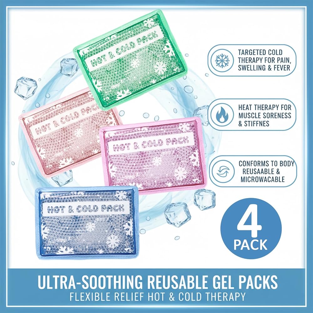 CONVENIENT 4-PACK & COLORS: This value set includes four ice packs in four distinct colors (Blue, Green, Pink, Purple), perfect for having multiple packs ready for different family members or body areas.