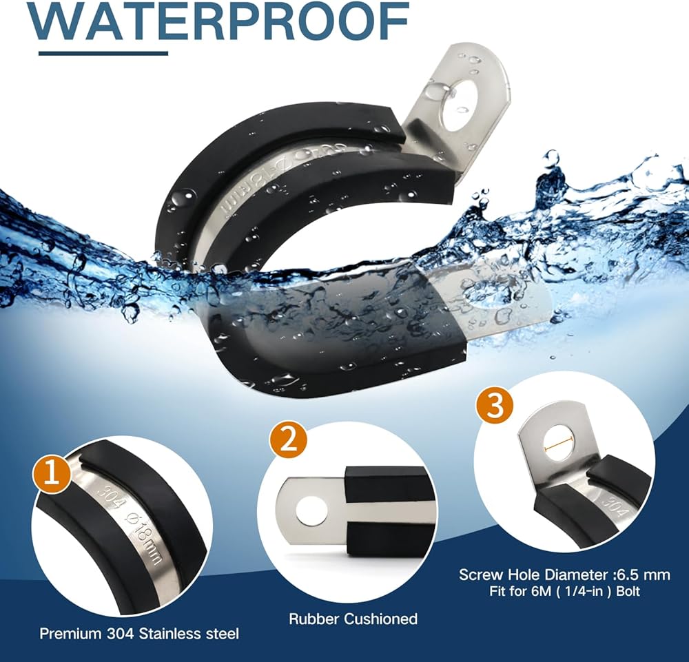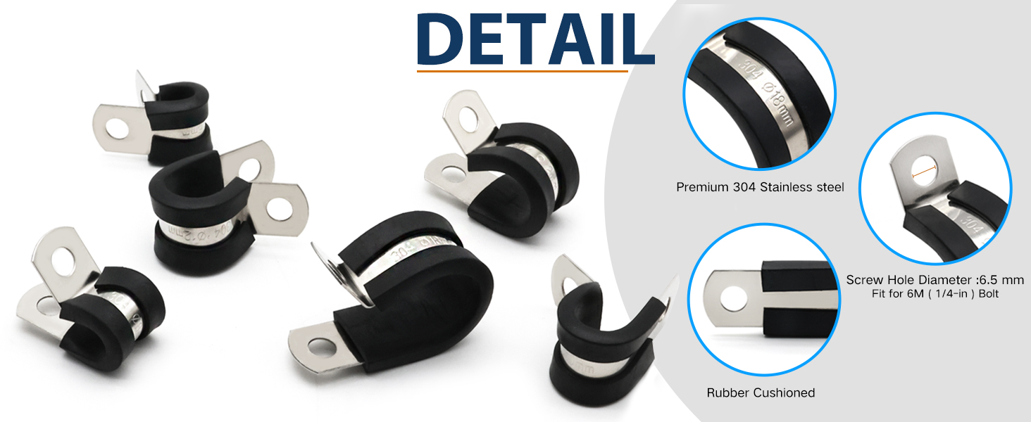 - Metal rubber clamps have a P-shaped design making the clamps flexible and stabilized, Easy to twist, bend and manipulate during fitment.