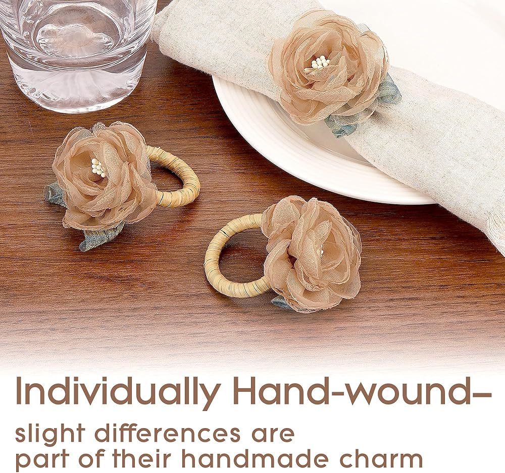 Whether you're preparing a full tablescape or adding a simple decorative accent, these camellia napkin rings bring a coordinated, charming finish to your arrangement.They also make a warm and easy gift choice for hosts, bridesmaids, or friends who appreciate handcrafted table décor.