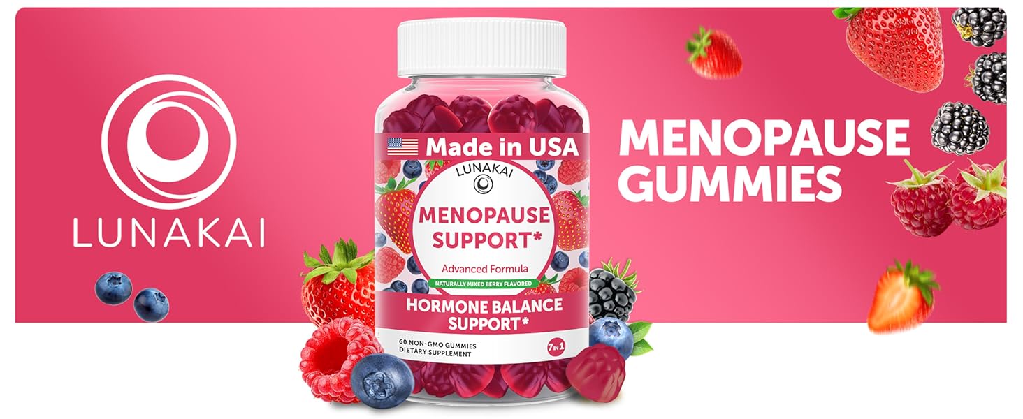 Lunakai USA Made Menopause Relief Gummies – Natural Menopause Supplements for Women with Black Cohosh & L-Theanine – Daily Support for Hot Flashes, Night Sweats & Hormonal Balance, 60ct