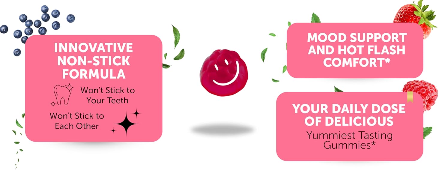 Naturally Flavored Gummies – Delicious mixed berry flavor made with natural ingredients, crafted to make your daily menopause support something you'll actually look forward to.