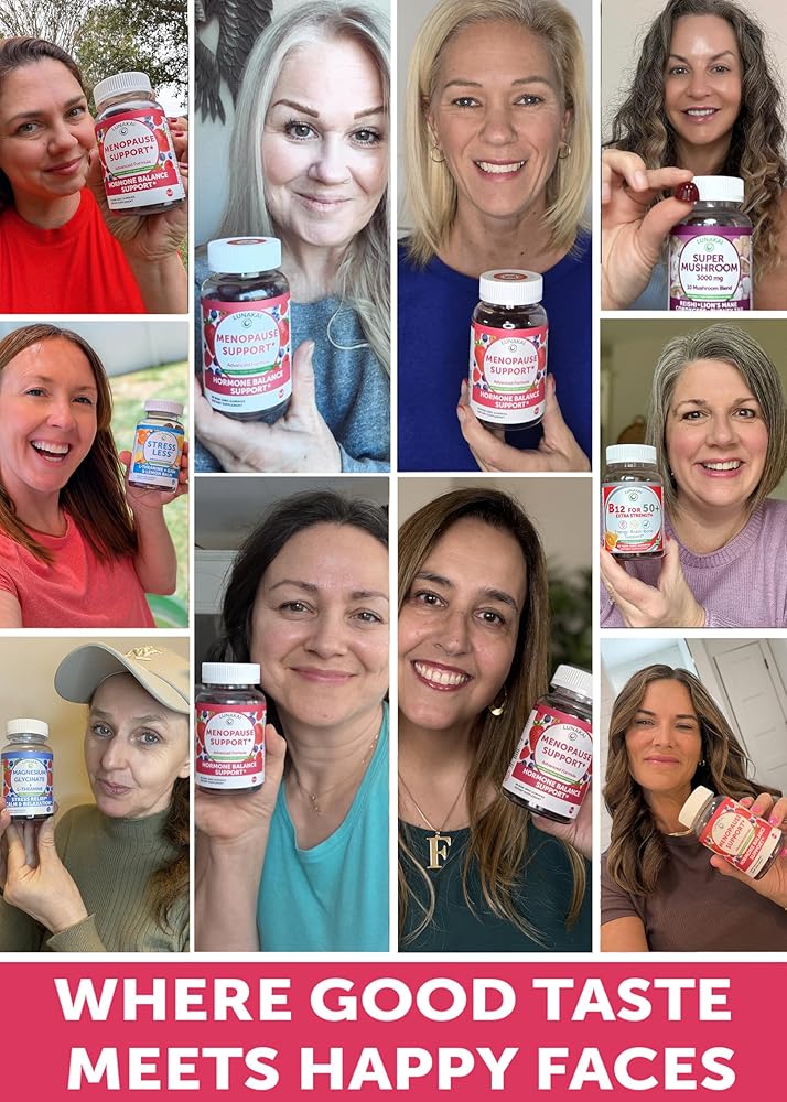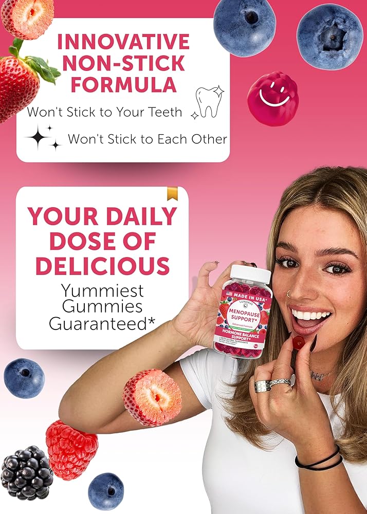 7-in-1 Menopause Gummies – Formulated for women 40+, these menopause supplements support hormone balance, hot flash relief, night sweats, emotional balance and more, before, during, and after menopause.