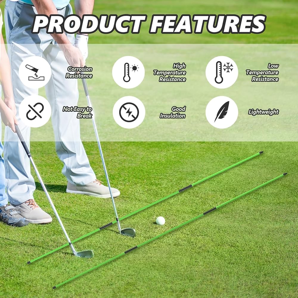 【GREAT HELPER FOR GOLF TRAINING】The golf alignment clubs are made of fiberglass, which is durable and not easy to break. The golf aiming practice club has an elastic rope inside, which is very convenient for stretching. Designed with a pointed head, the aiming stick can be easily inserted into the ground and is ready for hitting training, effectively adjusting the swing posture.