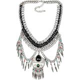 2. Step out in style with this eye-catching necklace that combines vintage charm with modern flair. The detailed leaves and playful tassel add a touch of whimsy to the wide chain design, making it the perfect statement piece for confident women who love bold accessories. Made from durable alloy metal, this colorful bead jewelry is sure to turn heads wherever you go.