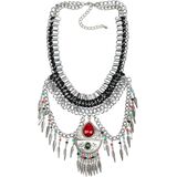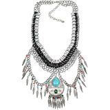 Vintage Pendant Necklace Leaves Tassel Wide Chain Statement Chunky Women Alloy Metal Colorful Bead Jewelry