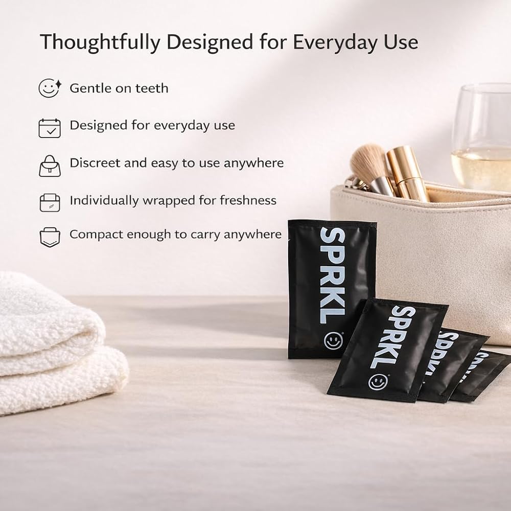 Pocket-Friendly & Perfect for Nights Out: Designed for wine tastings, dinners, travel, and events, SPRKL wine wipes fit in any purse or pocket for easy on-the-go cleaning. The simplest way to clean teeth after wine- no water, no mess.