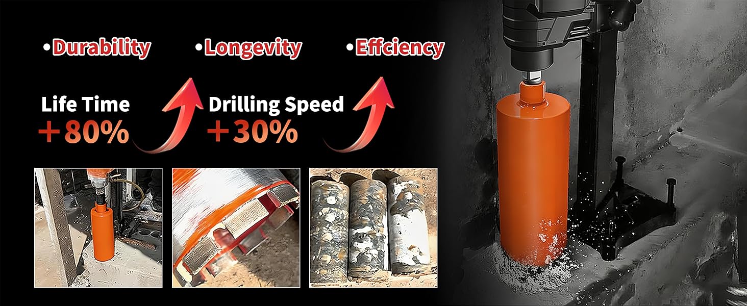 High-Density Diamond Segments – Faster & Longer-Lasting High diamond concentration ensures faster penetration, smoother cutting edges and longer service life compared to standard density core bits.