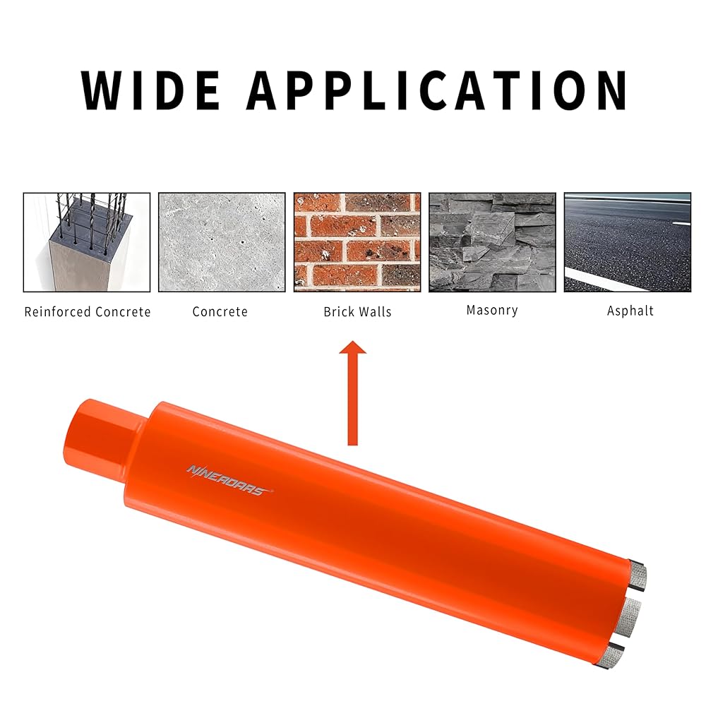 Cuts Reinforced Concrete with Rebar & Asphalt (Wet Only) Designed for wet drilling through reinforced concrete with rebar, asphalt, brick, granite and masonry. Strong penetration on tough, mixed materials.