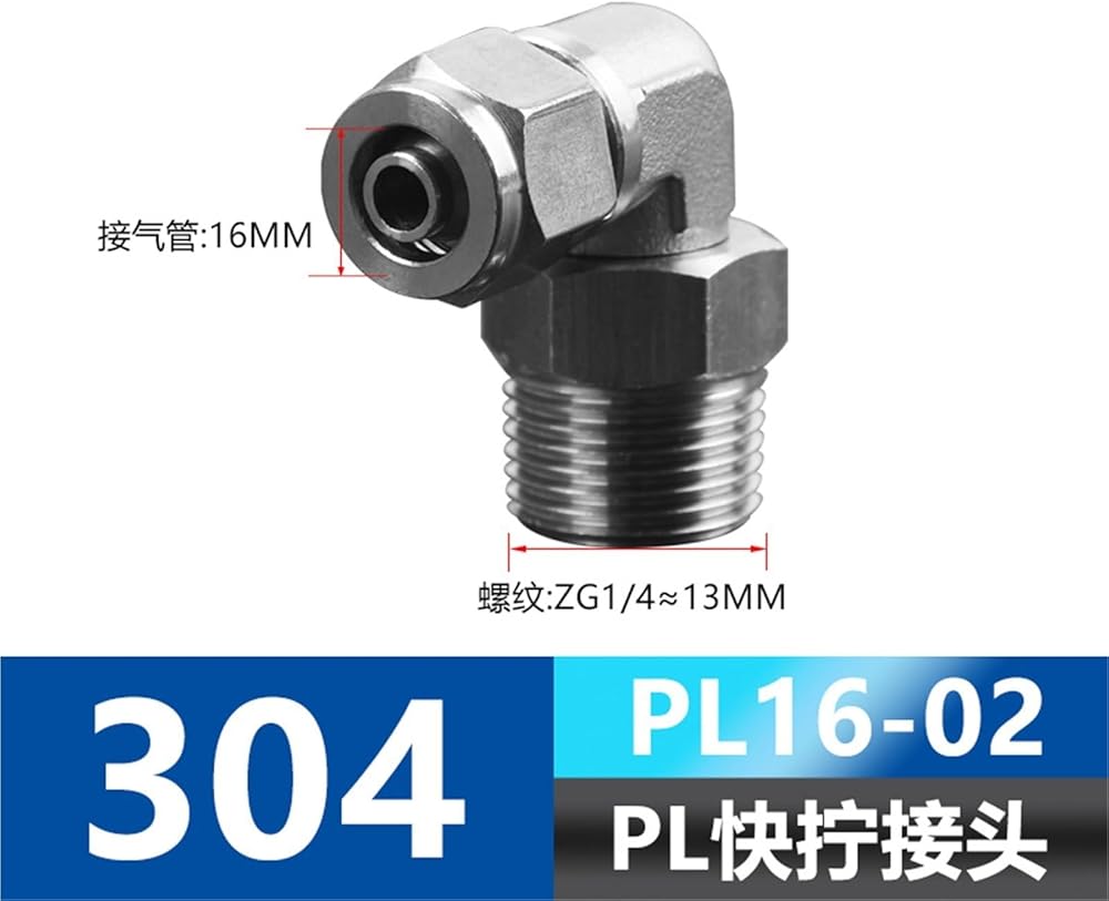304 Stainless Steel Pneumatic Tube Quick Twist Joint PL8-01 Locking Nut Right Angle Rotation Bend 6-1 1Pcs(不锈钢快拧PL16-02)