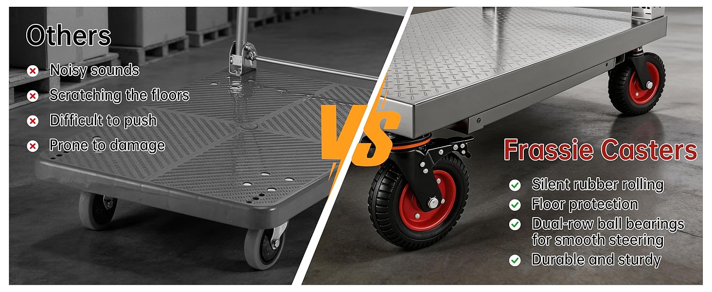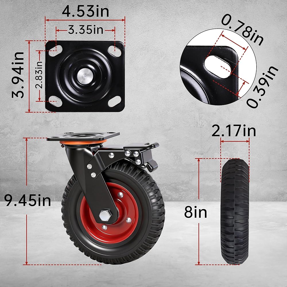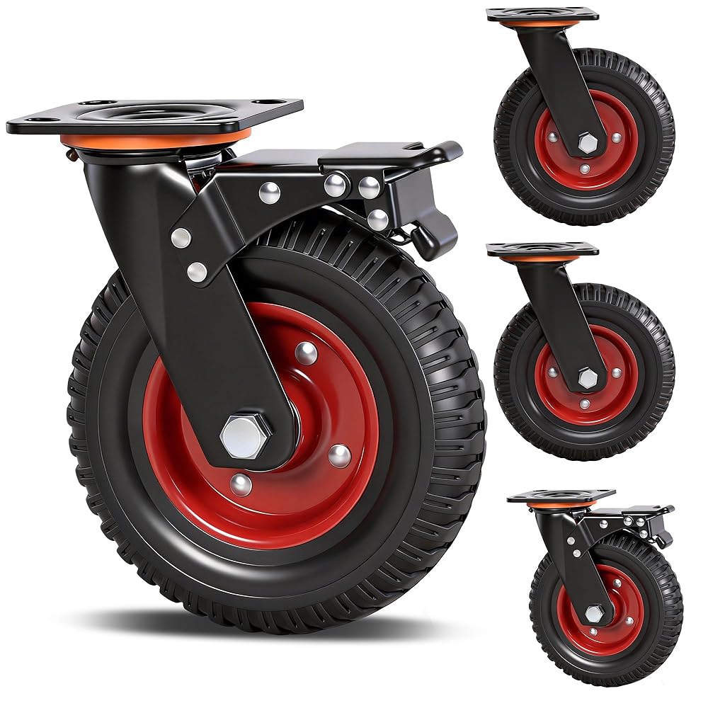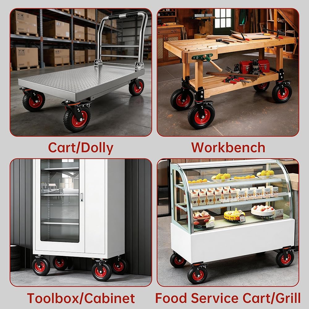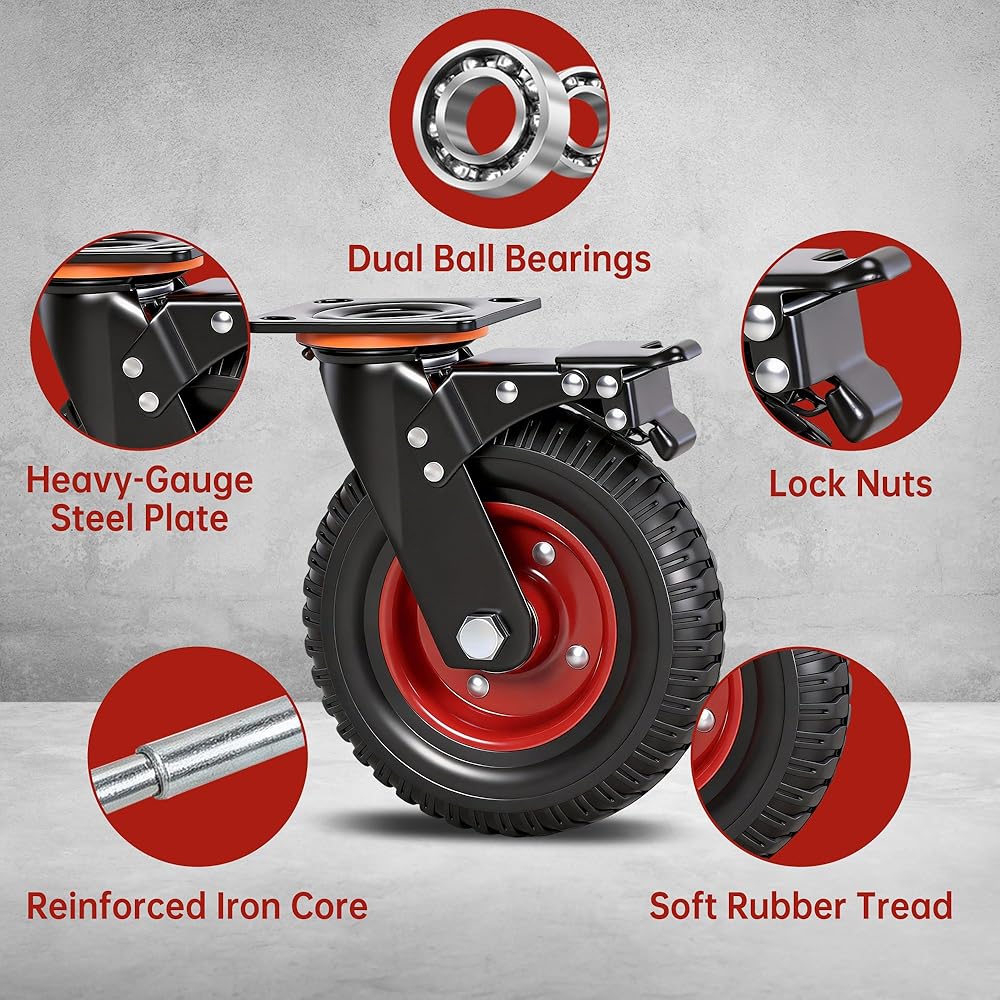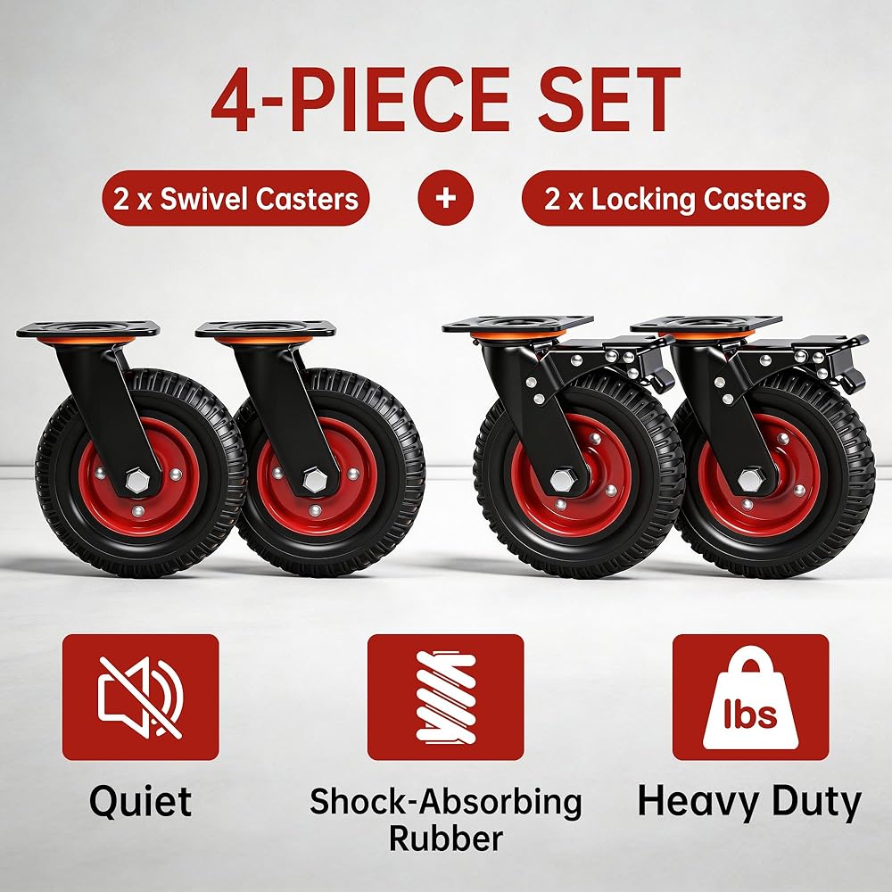 Quiet and shock absorbing: 8-inch caster wheels made from premium soft rubber operate quietly and effectively absorb shocks. Suitable for your home workshop, they keep your equipment gliding smoothly while protecting floors from damage